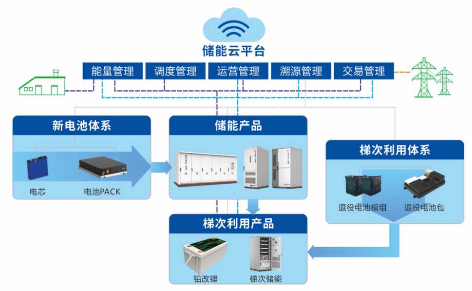 構(gòu)建“三款產(chǎn)品、兩套體系、一個平臺”業(yè)態(tài),不斷攻克儲能與梯次利用關(guān)鍵技術(shù),實現(xiàn)儲能產(chǎn)品全生命周期數(shù)字化管理,建設(shè)從電池—梯次利用—電池材料的低碳循環(huán)產(chǎn)業(yè)鏈。